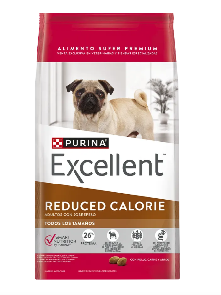 *Contiene 12% menos calorías, que el alimento PURINA® EXCELLENT™ Adult Razas Medianas y Grandes.