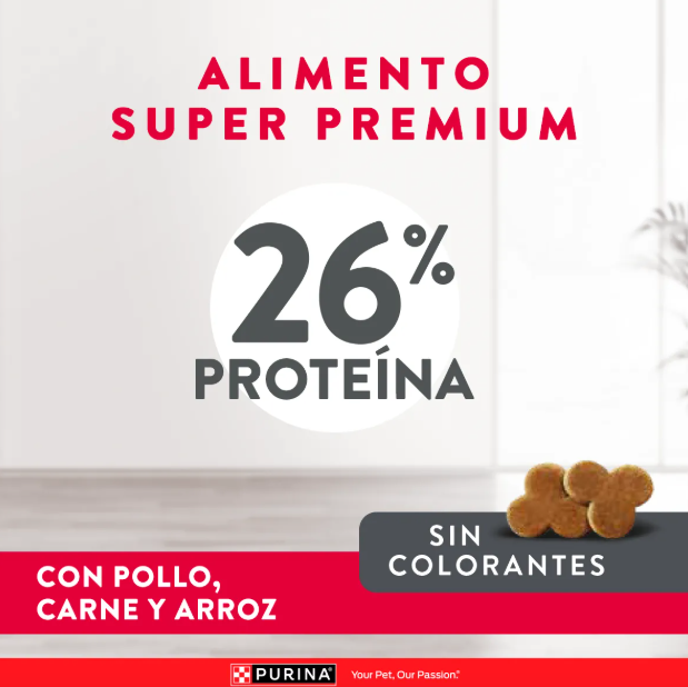 PURINA® EXCELLENT™ le ofrece una fórmula con proteínas de alta digestibilidad y antioxidantes naturales, que ayudan a retrasar los signos del envejecimiento; y con fuentes naturales de glucosamina para mantener sus articulaciones saludables.