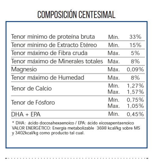 - El aceite de pollo: brinda ácidos grasos omega 6 fundamentales para promover la salud de la piel y el brillo del manto.