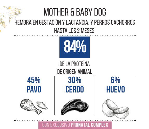 La gestación y la lactancia son etapas de la vida con requerimientos altos de energía, grasas y proteínas. NUTRIQUE MOTHER & BABY DOG ayuda a fortalecer las defensas naturales y el sistema digestivo de la madre y su camada, además, colabora con un buen desarrollo cognitivo de los cachorros.