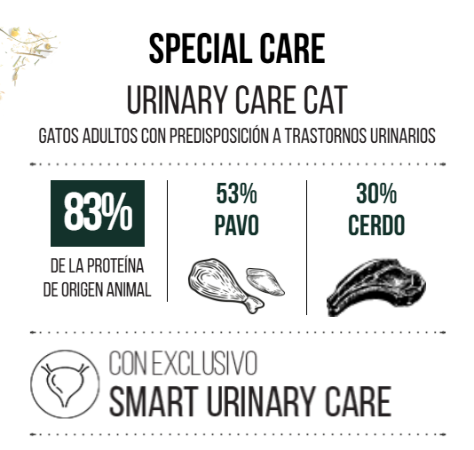 • El pavo y el cerdo: estos ingredientes naturales aportan proteínas de gran calidad y permiten, junto al agregado de acidificantes y un balance óptimo de minerales, alcanzar un pH urinario óptimo y prevenir la formación de cristales.