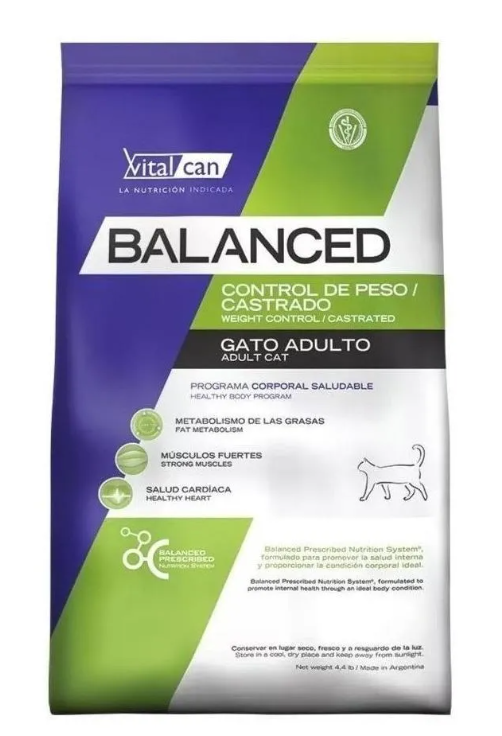 Vitalcan Balanced es ideal para gatos adultos castrados, obesos o con tendencia a la obesidad porque su Programa Control de Peso les proporciona: