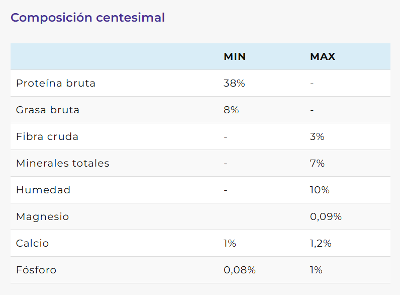 - Salud osteoarticular: una excelente relación calcio/fósforo, combinada con glucosamina, vitamina C, sales de manganeso y metilsulfonilmetano, que colaboran con la salud de huesos y articulaciones.