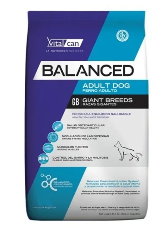 Vitalcan Balanced es ideal para perros adultos de raza gigante porque su Programa Equilibrio Saludable les proporciona: