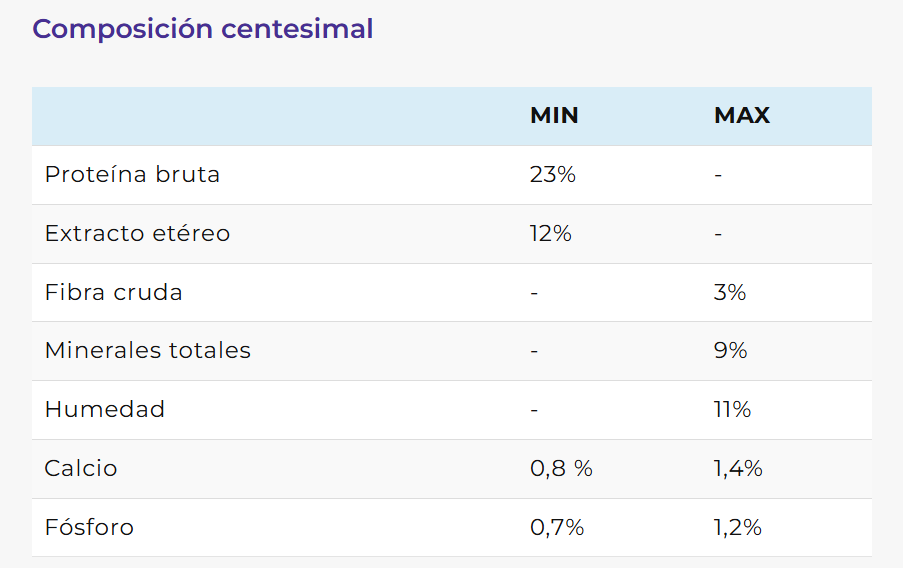 - Cuidado óseo: aporta cantidades equilibradas de calcio y fósforo que contribuyen a mantener huesos sanos y fuertes.