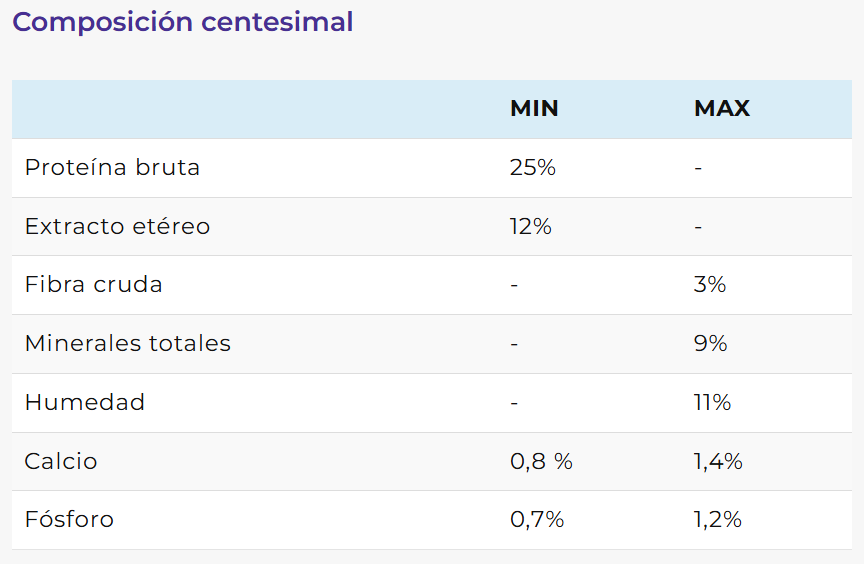 - Cuidado óseo: aporta cantidades equilibradas de calcio y fósforo que contribuyen a mantener huesos sanos y fuertes.