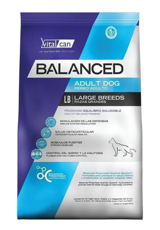 Vitalcan Balanced es ideal para perros adultos de raza grande porque su Programa Equilibrio Saludable les proporciona: