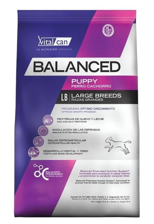 Vitalcan Balanced es ideal para perros cachorros de raza grande porque su Programa Óptimo Crecimiento les proporciona: