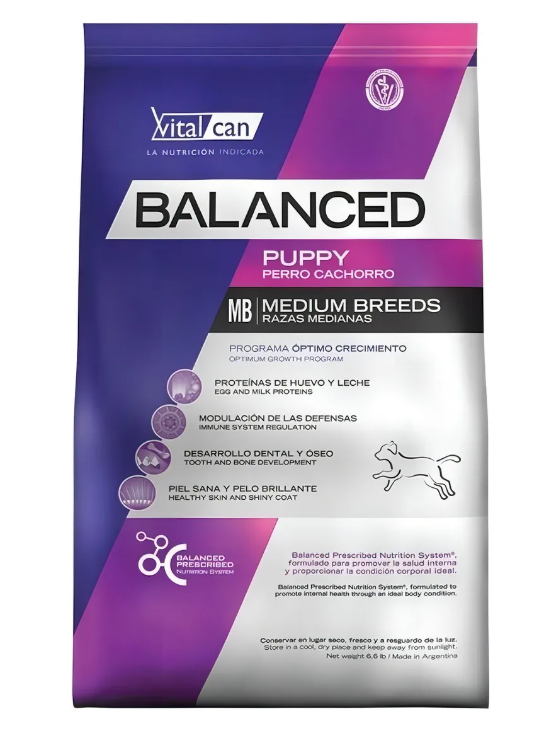 Vitalcan Balanced es ideal para perros cachorros de raza mediana porque su Programa Óptimo Crecimiento les proporciona: