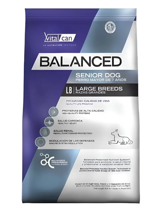 Vitalcan Balanced es ideal para perros maduros de raza grande porque su Programa Calidad de Vida les proporciona