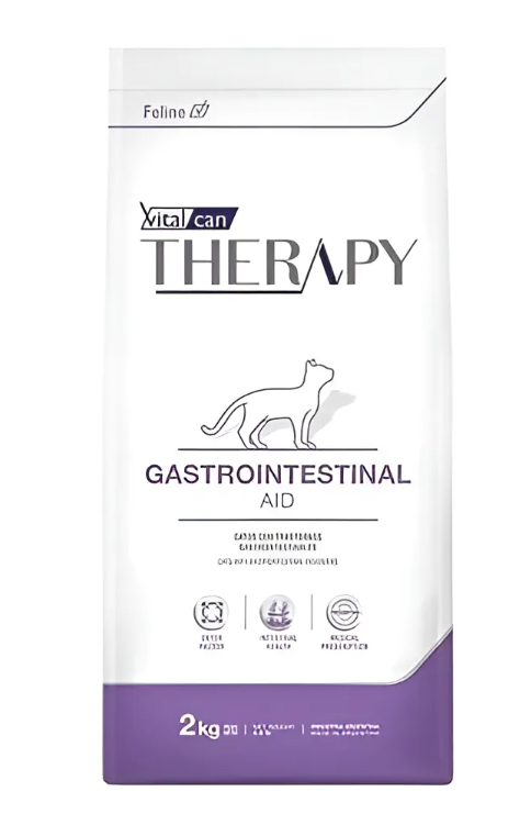 Vitalcan Therapy Feline Gastrointestinal Aid es un alimento de prescripción que contribuye al manejo nutricional del animal con síndrome de malabsorción, malasimilación, diarreas, vómitos, colitis, entre otros.