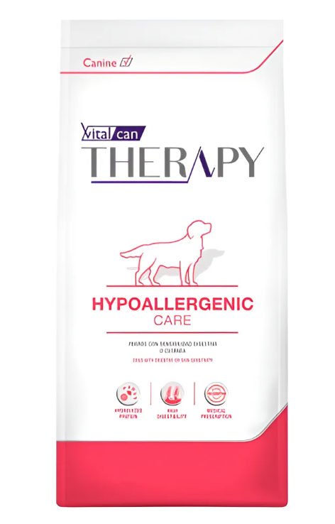 Vitalcan Therapy Canine Hypoallergenic Care es un alimento completo de prescripción para perros de todas las edades que presentan alergia e intolerancia alimentaria con manifestaciones digestivas y/o cutáneas. Este alimento ha sido elaborado con proteínas hidrolizadas de bajo peso molecular y carbohidratos especialmente seleccionados para colaborar con el tratamiento de estas patologías.