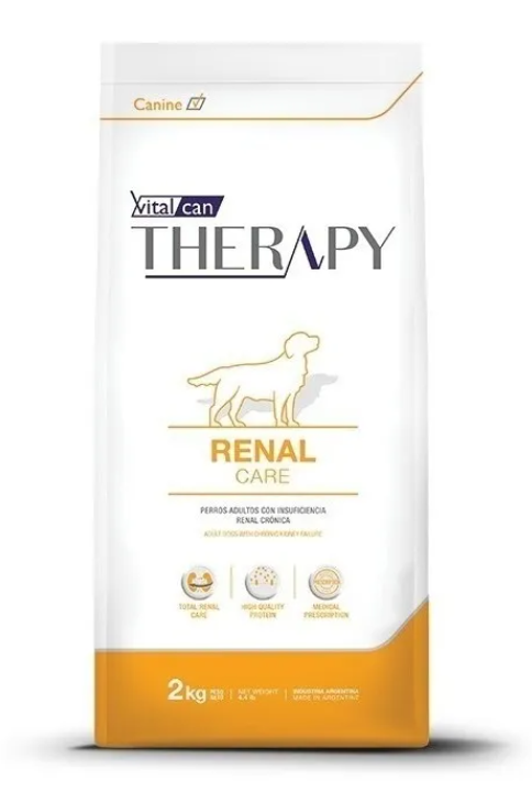 Vitalcan Therapy Canine Renal Care es un alimento con moderada cantidad de proteínas que proporciona un marcado efecto antiinflamatorio local, además de niveles incrementados de vitamina B y potasio para reponer las pérdidas por la diuresis asociada a la enfermedad renal crónica (ERC). El agregado de Yucca schidigera como secuestrante de amonio ayuda a bajar los niveles de nitrógeno en sangre, a la vez que disminuye el olor de las deposiciones.