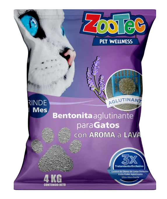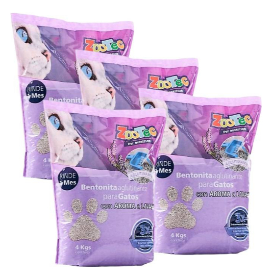 Arena Aglutinante Para Gatos Bentonita Zootec Aroma Lavanda 16 Kg (4 bolsas x 4 Kg)