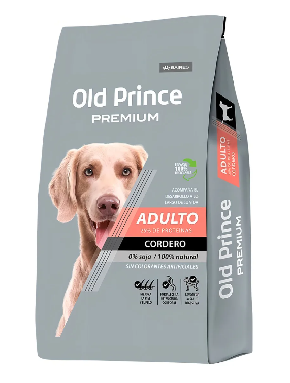 Old Prince Premium Adultos Cordero y Arroz es un alimento seco diseñado para perros adultos. Contiene harina de cordero, arroz, y una mezcla de vitaminas y minerales esenciales que promueven la salud y el bienestar general. Con un 25% de proteína y ácidos grasos Omega 3, es ideal para mantener una piel saludable y un pelaje brillante. Su fórmula incluye antioxidantes naturales y está enriquecida con glucosamina y condroitina para el soporte de las articulaciones.