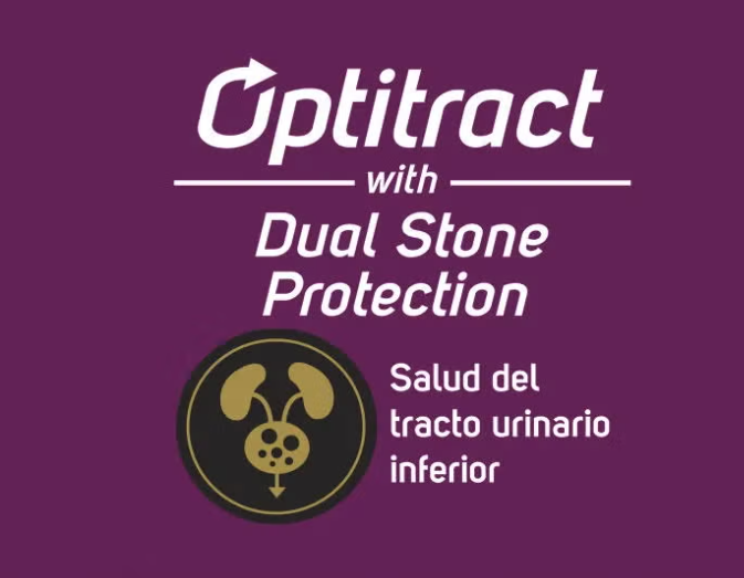• Con Tecnología Optitract with Dual Stone Protection. Es una combinación exclusiva de nutrientes que ayuda a prevenir la formación de cristales de estruvita y oxalato, manteniendo y protegiendo la salud del tracto urinario inferior de los gatos adultos.
